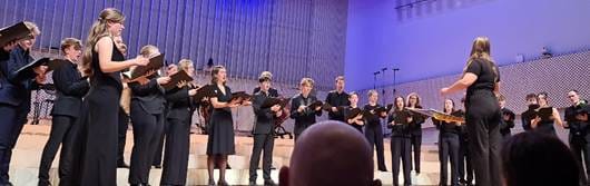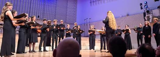 Zeuthen Jolina Robert (10/1) und Emma Werther (Abi-Jahrgang 13), nahmen an diesem Projekt teil. In 3 Blöcken – Freitag/ Samstag/ Sonntag wurde intensiv an Grundlagen des Dirigats, Probenarbeit und Methodik, Vertiefung musikalischer Fähigkeiten, Repertoirekenntnisse sowie Auftrittsorganisation gearbeitet. Das war sicher anstrengend, immerhin sind die Anforderungen aus der Schule nicht zu vernachlässigen.
