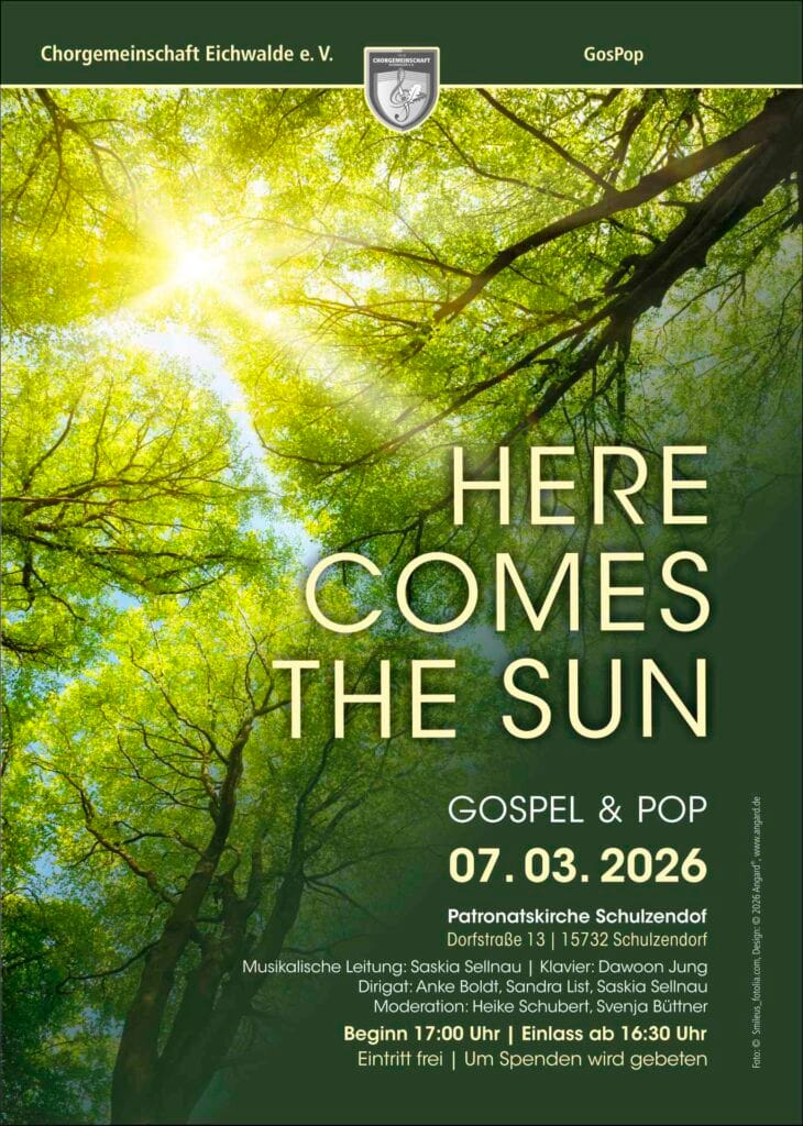 Der Frauenchor „GosPop“ der Chorgemeinschaft Eichwalde e.V. lädt zum Frauentagskonzert in die Patronatskirche Schulzendorf am 07.03.2026 um 17 Uhr ein.
